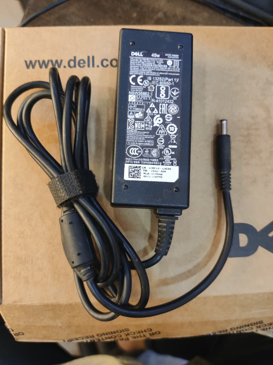 DELL 4.5mm pin laptop adapter comes with 45W output power and output current 2.31A. This 19.5V adapter is specially designed to meet the power needs of your Dell laptop or Tablet.